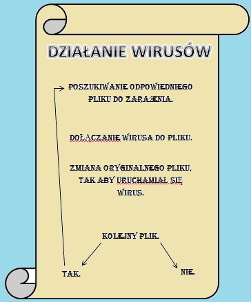 - wirusy plikowe - infekuje pliki wykonywalne (rozszerzenia exe lub com), można założyć, że przy każdym uruchomieniu "chorego" pliku, wirus się powiela